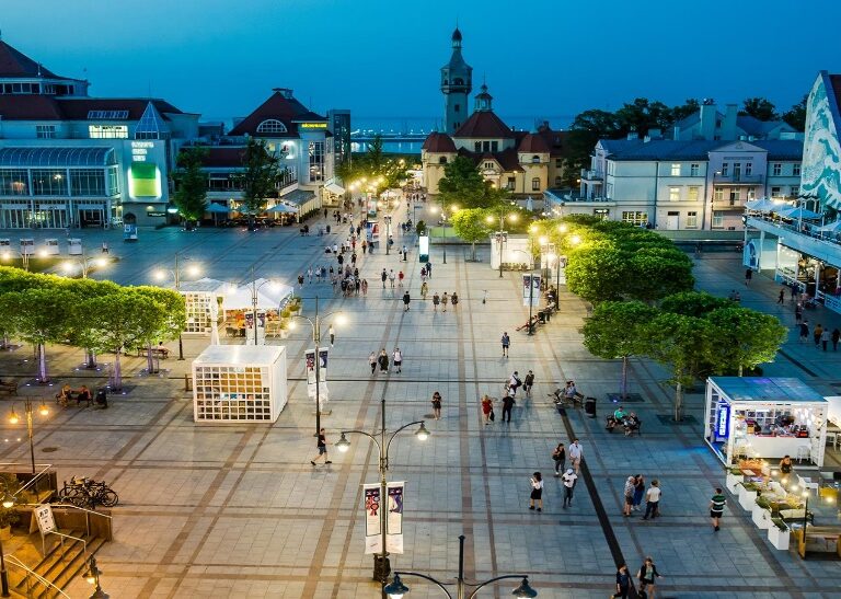 W trakcie spaceru po Sopocie przejdziemy wzdłuż ulicy Bohaterów Monte Casino, popularnie zwanej Monciakiem – latem deptak ten nigdy nie zasypia.